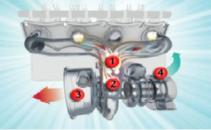 گازهای گرم بجای رهایی ازطریق لوله ی تخلیه، درطی جریان احتراق به توربوشارژر تولیدمی شوند. سیلندرهای داخل موتور احتراق داخلی به ترتیب (نه یکباره) آتش می گیرند، لذا خروجی (اگزوز) محفظه ی احتراق را در تکانه های نامنظم خارج می کند.